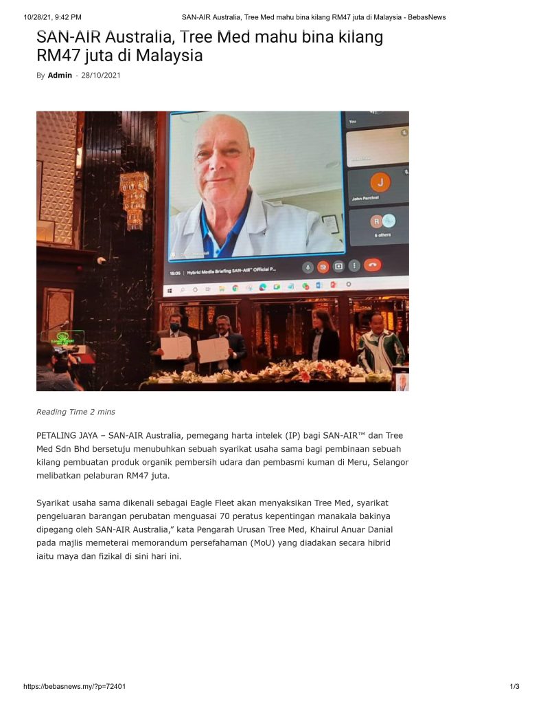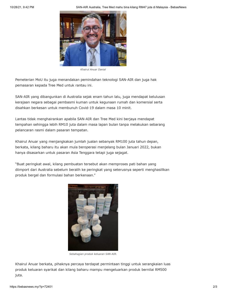 • Ekonomi : SAN-AIR, Tree-Med labur RM46.7 juta dalam kilang di Meru, sasar jualan RM100 juta